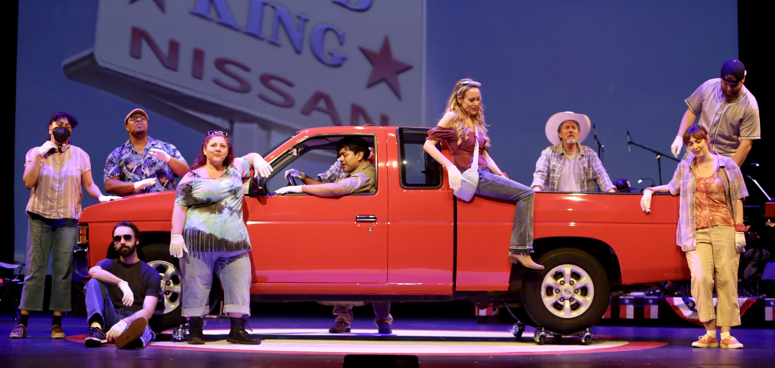 Cast of Hands on a Hardbody appear with Nissan pickup truck that’s the focus of the Rohnert Park show. Photo by Jeff Thomas.