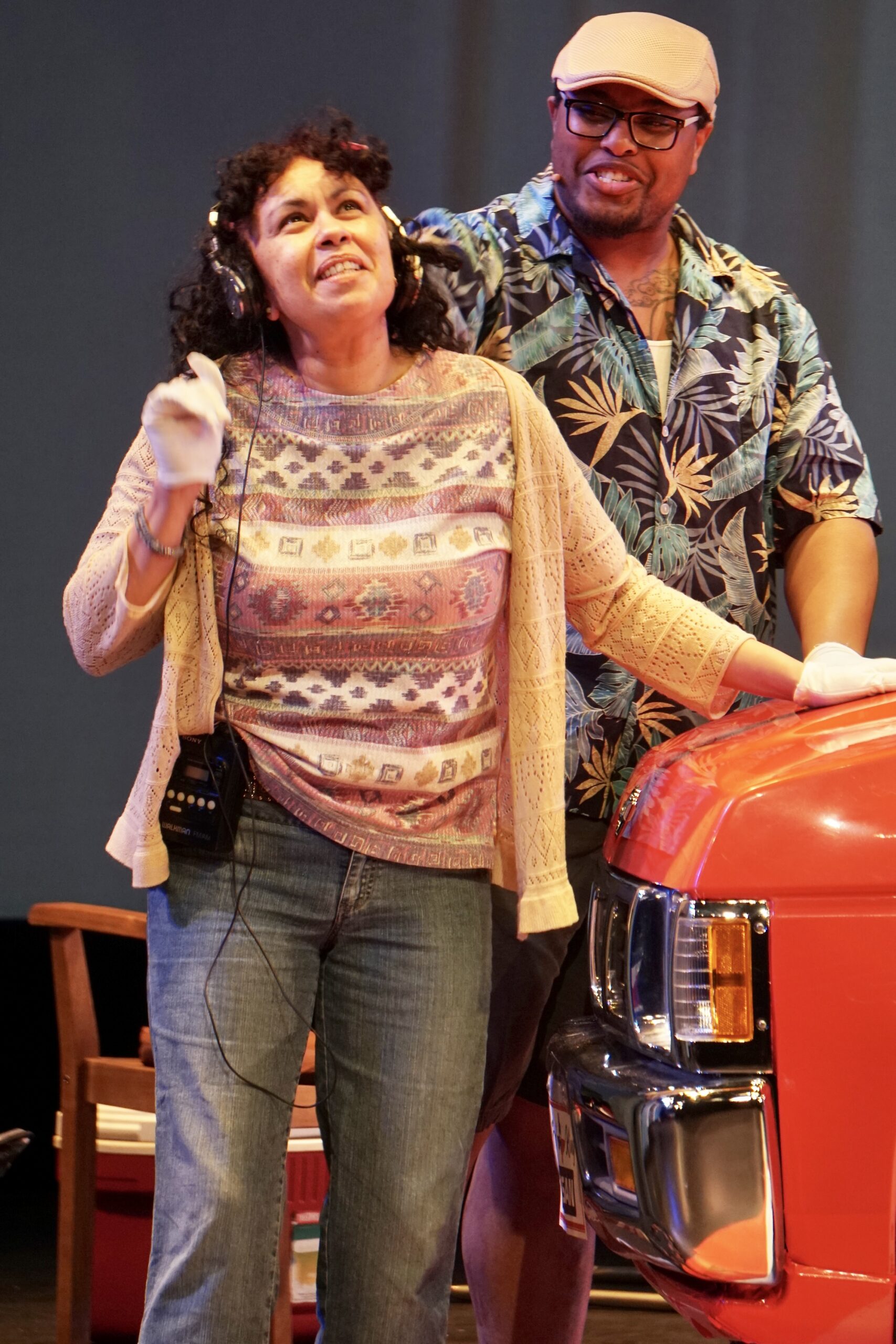 Theatergoers get a batch of characters to root for. They can sympathize, for instance, with Norma, a fervent Christian who apparently has multiple church congregations praying for her to win. She’s portrayed by Serena Elize Flores, who stops the show with a booming gospel tune, “Joy of the Lord,” showing off what’s easily the best voice on stage. The cast — 16 actors of different shapes, sizes, ethnicities, and vocal abilities —makes the number even better by rhythmically pounding on the truck with white cotton gloves they’re ordered to wear.