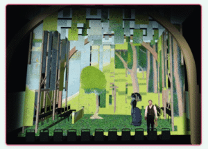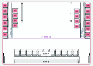 Shotgun Players onstage seating diagram. Audience members may sit within Seurat’s landscape.
