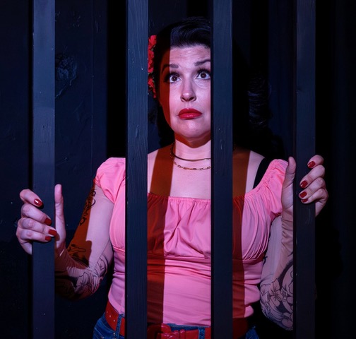 Michele Sanner Vargas plays the title role in “The People vs. Mona” at Masquers Playhouse in Point Richmond. (Courtesy Mark Decker)